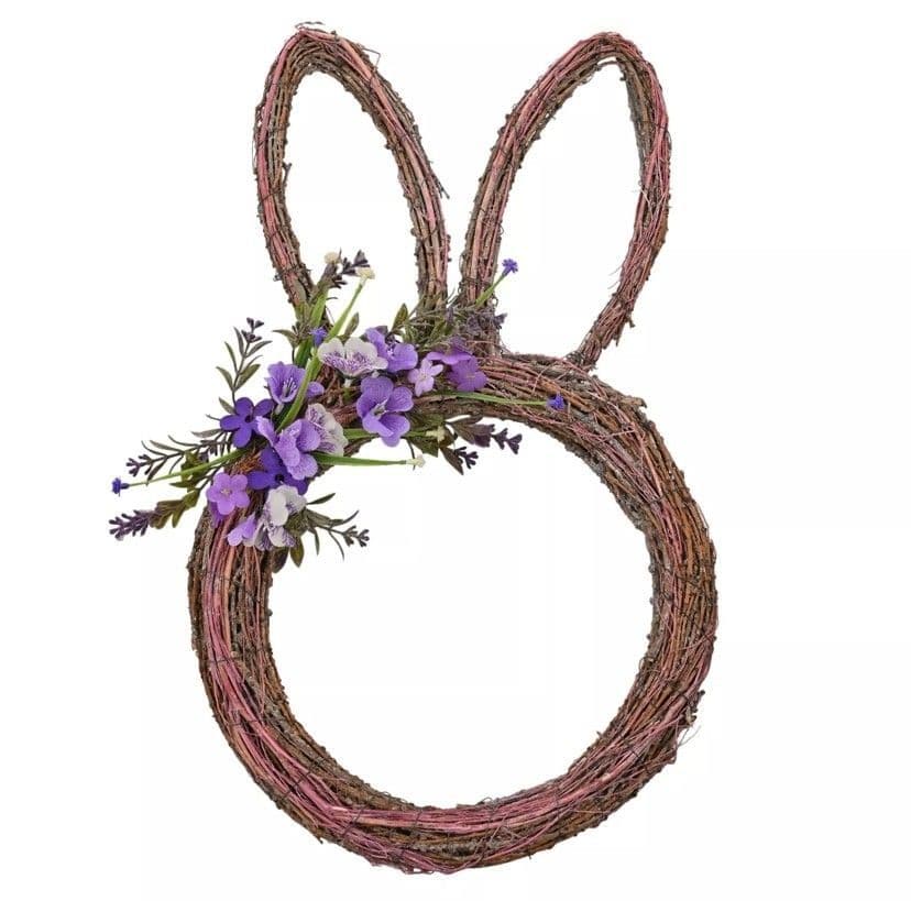 Bunny Ears Natural Rustic Wreath With Purple Flowers and Foliage - 27cm
