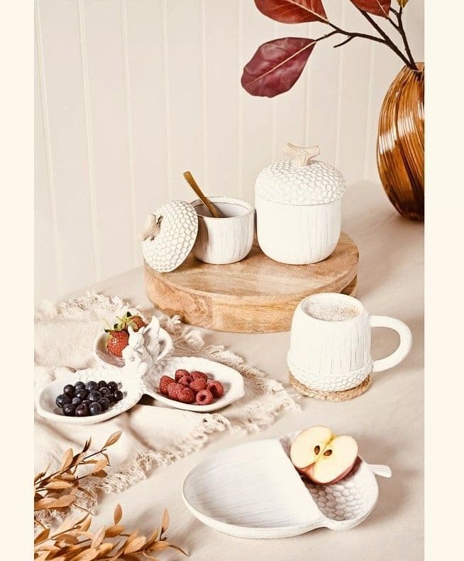 A charming and useful addition to any Autumn décor. Made from high-quality ceramic with a glazed finish. Its crisp white colour scheme adds a touch of freshness and versatility, allowing it to seamlessly complement a variety of kitchen décor styles and colour palettes.