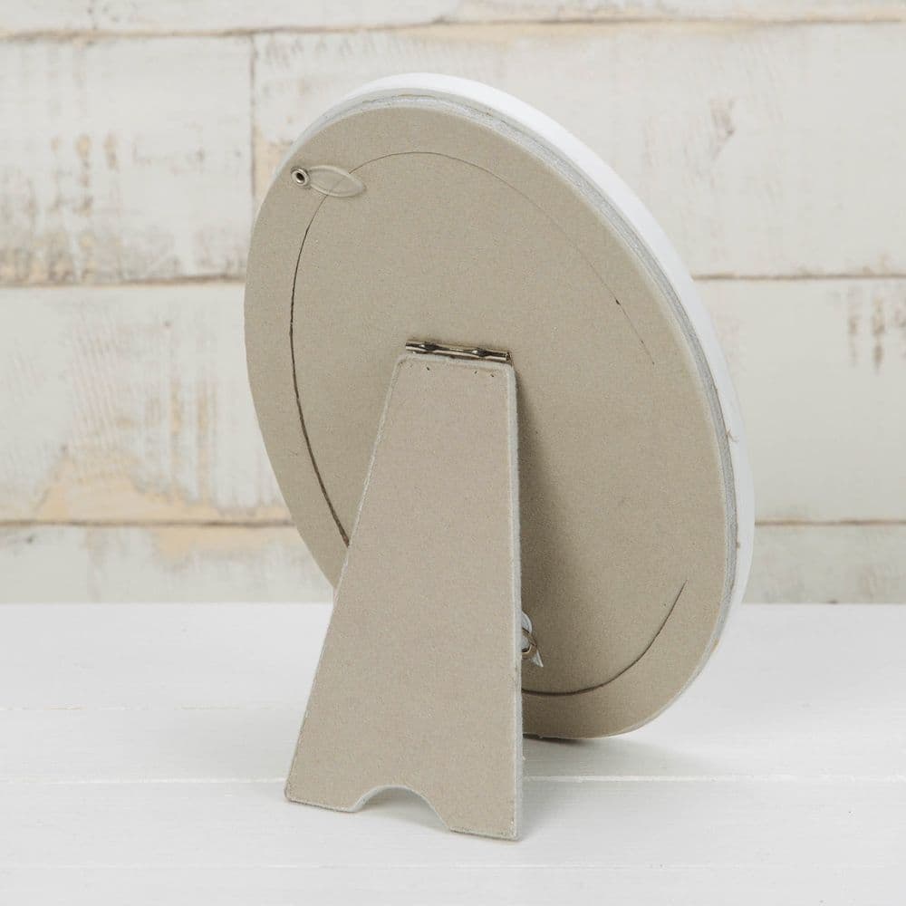 Give a precious photo from their earliest days the perfect place to shine with this adorable Dumbo oval photo frame. From Disney Magical Beginnings - celebrating the start of the greatest adventure. This irresitibly cute hand painted frame is cast from a hand made clay mould and includes a 3D Dumbo and metallic gold and silver stars on a white border. The aperture fits a portrait 4" x 6" photo. Complete with a standing strut and branded gift box.
