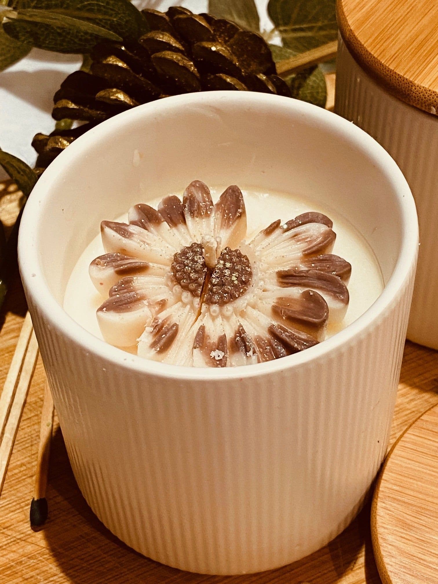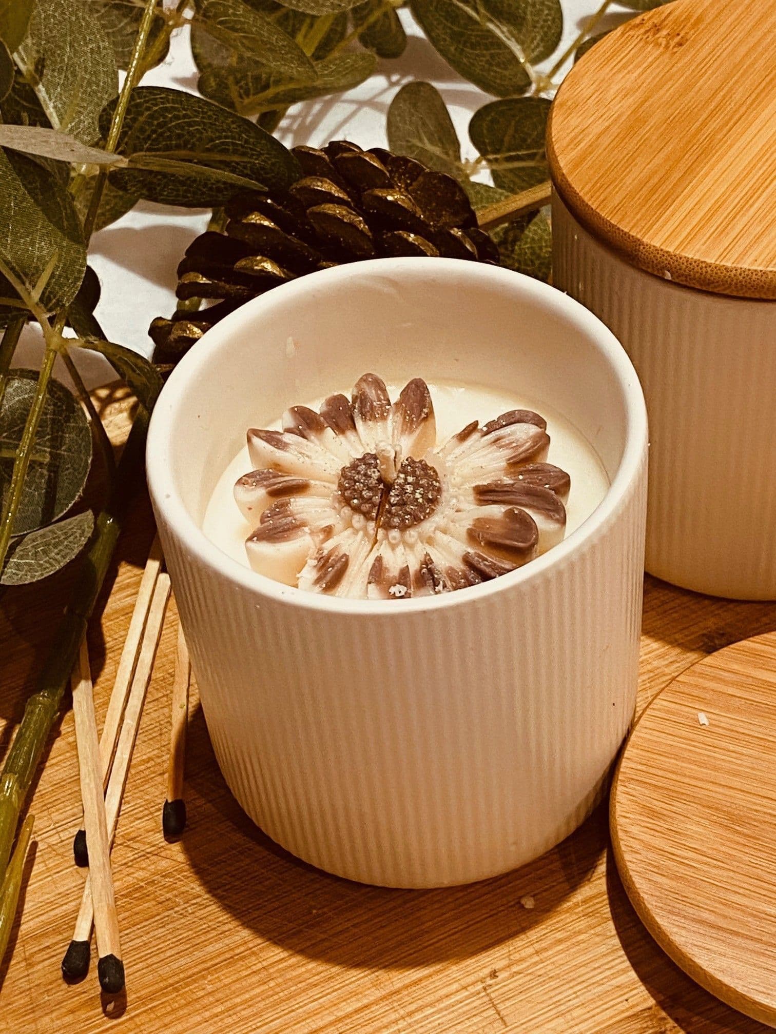 Each design is carefully considered: from the creamy daisy wax flowers to the reusable ceramic pots, every element reflects our commitment to elegance, sustainability, and creating moments that linger in memory.