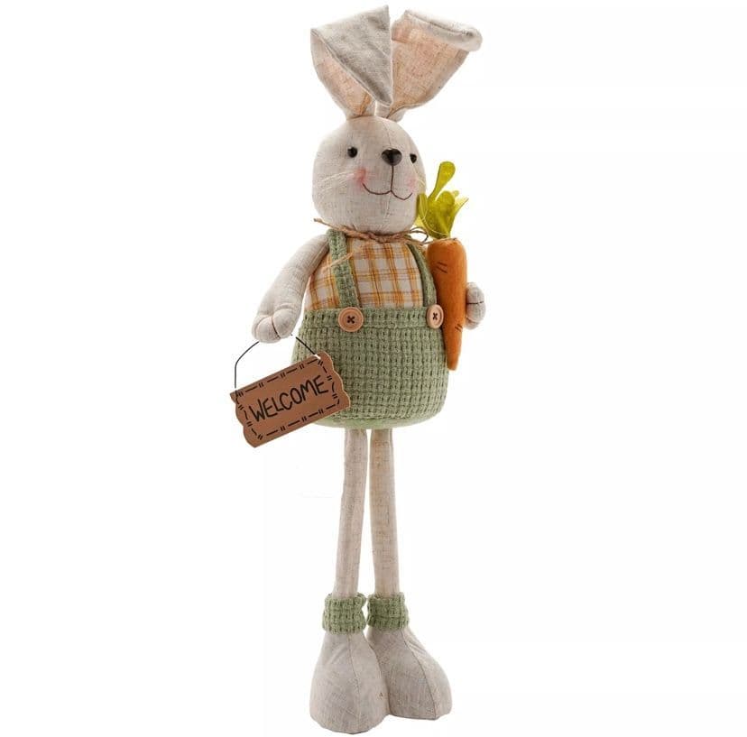 Bring a touch of whimsy to your Easter decor with this boy and girl bunny set featuring telescopic legs, perfect for adding charm to any home or spring décor. Their adjustable legs allow for customizable height, and they’re dressed in vibrant, multi-colored outfits that are both playful and captivating